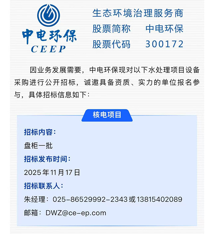 中電環(huán)保股份有限公司是南京市首家環(huán)保上市公司(股票簡稱:中電環(huán)保,股票代碼:300172),南京環(huán)保產(chǎn)業(yè)協(xié)會會長單位,國家級聯(lián)盟理事長單位,是生態(tài)環(huán)境治理服務商,主營(3+1):水務、固危廢、煙氣治理及產(chǎn)業(yè)創(chuàng)新平臺,包括:工業(yè)水處理、污水處理及水環(huán)境綜合治理;固危廢土壤、污泥餐廚垃圾處理;煙氣及VOCS治理;智慧環(huán)保;高端裝備等。