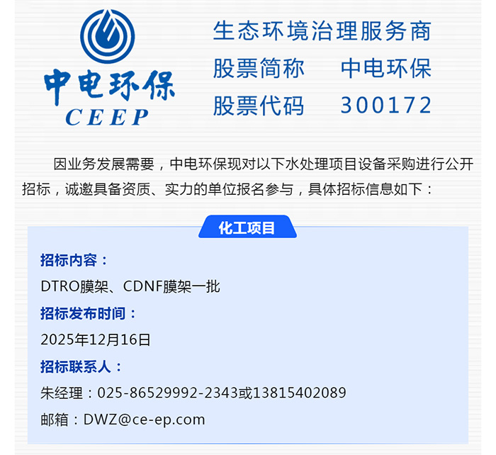 【招標(biāo)-25-17期】中電環(huán)保誠(chéng)邀參與:水處理項(xiàng)目設(shè)備采購(gòu)公開(kāi)招標(biāo)