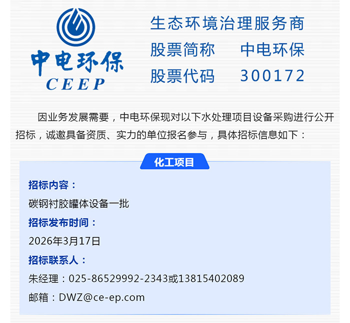 【招標-26-07期】中電環(huán)保誠邀參與:水處理項目設備采購公開招標